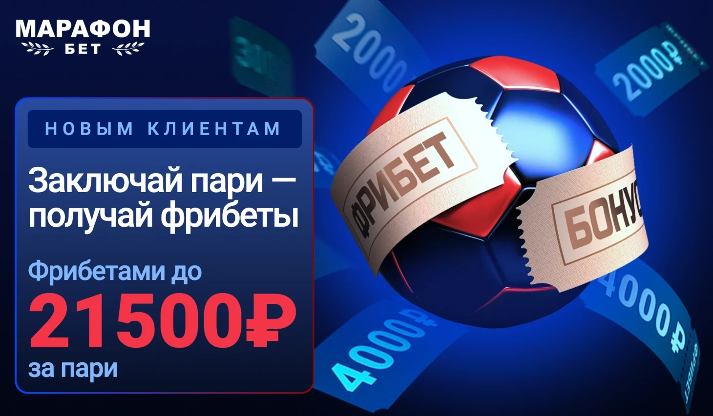 ЭКСКЛЮЗИВ! Фрибет до 21 500 рублей новым игрокам от БК «Марафон» – за первые ставки