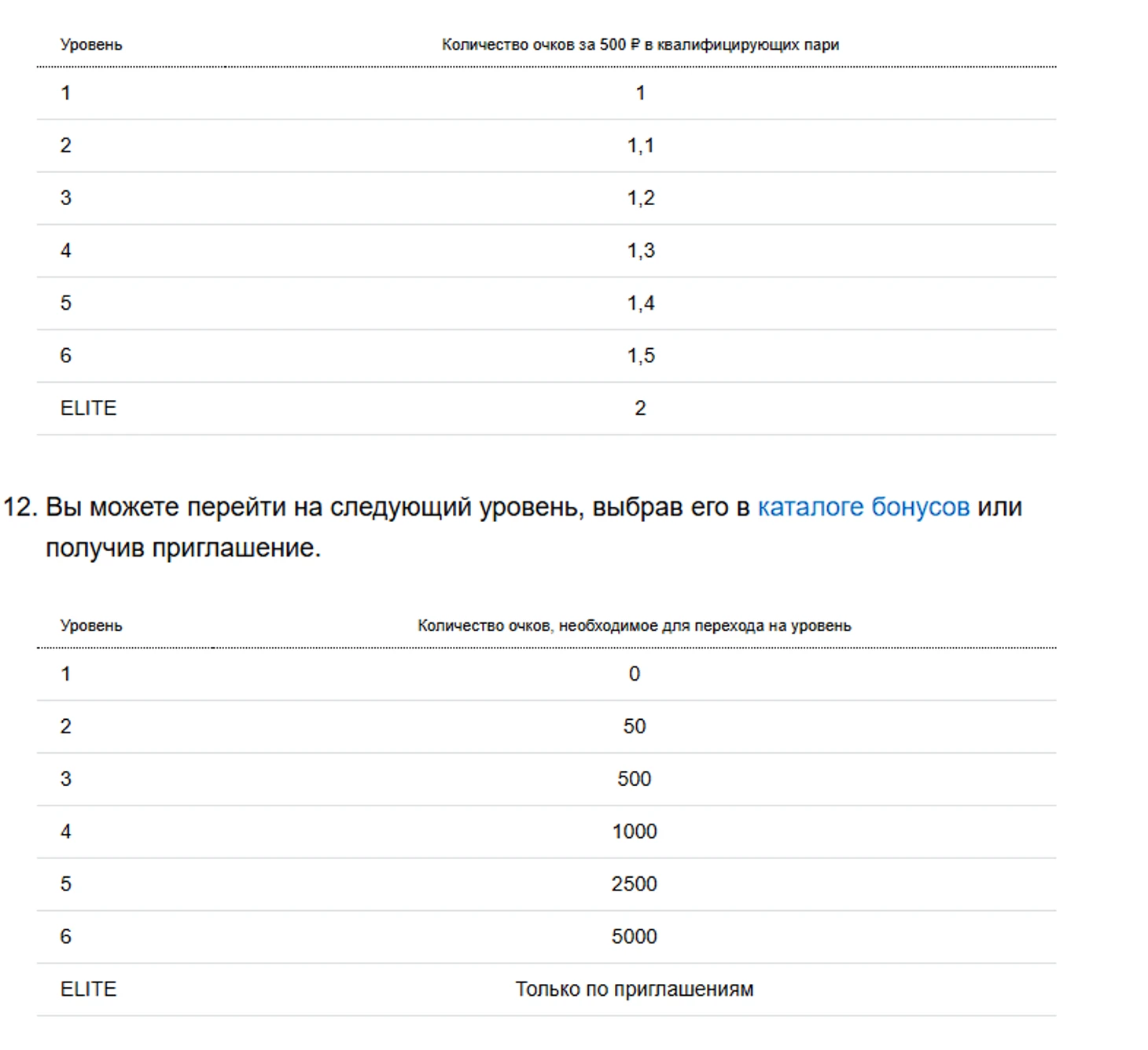 Для использования бонусов лояльности надо копить очки. Они начисляются за каждую ставку на сумму не менее 5 рублей с коэффициентом от 1,30. Стоимость квалифицирующей ставки зависит от статуса игрока. За каждые 500 рублей можно получить от 1 до 2 очков.