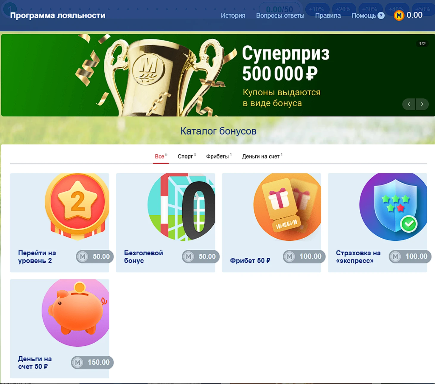 В программе лояльности букмекера пять возможностей:
