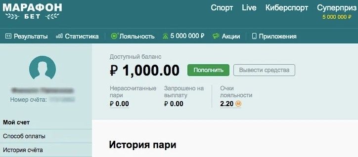 Каждый беттор может сделать не более трех заявок на вывод выигрыша за сутки. При этом администрация БК «Марафон» в индивидуальном порядке может разрешить дополнительные выплаты, но в таком случае будет комиссия в сумме до 5% при выплатах по четвертой и остальным последующим заявкам.